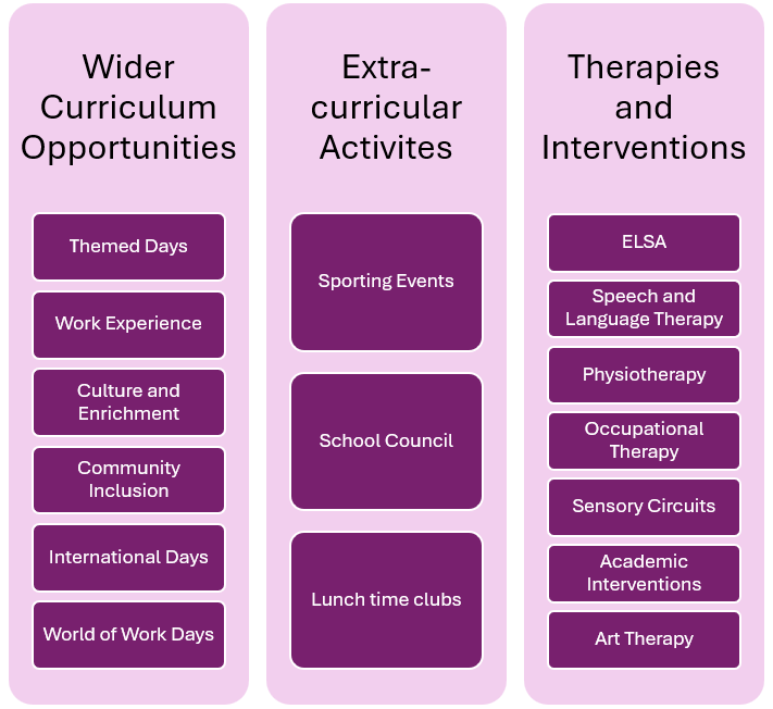 Every pupil has the right to a high-quality education that meets their individual needs. Our focus on accessible, adapted provision ensures that barriers to learning, whether physical, cognitive, linguistic or socio-economic, are identified and overcome, promoting equity, inclusion and engagement. |